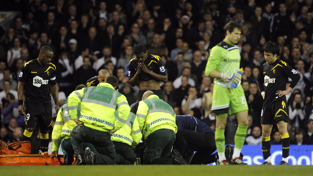 Fabrice muamba is currently in critical condition after going into cardiac arrest during a football match between his team, bolton wanderers.